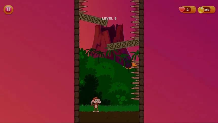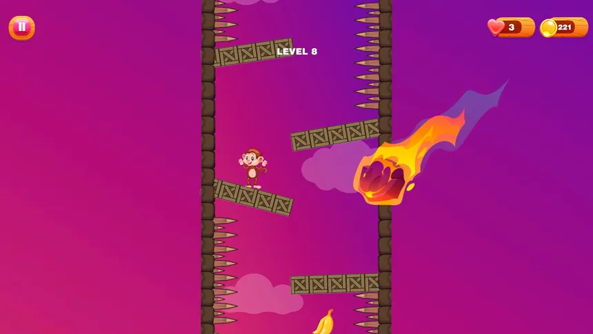 Прыгайте вниз, собирайте бананы и выживайте как можно дольше в этой быстро развивающейся 2D казуальной игре.