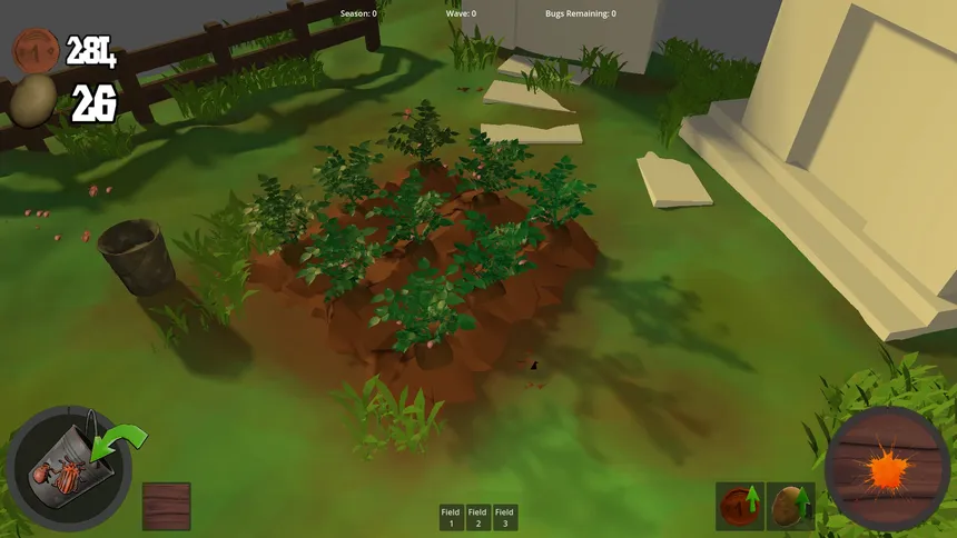 Pick up and smash bugs, upgrade your tools to protect your potato patch from escalating waves of pests!