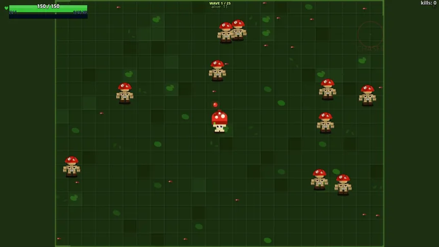 A top-down survivor roguelite where you battle endless waves of mutant fungi. Level up, choose powerful upgrades, and outlast the Mycelord's ever-growing horde. How long can you last?