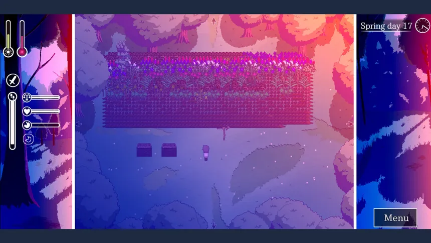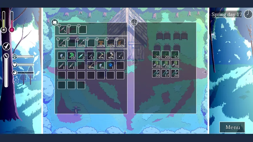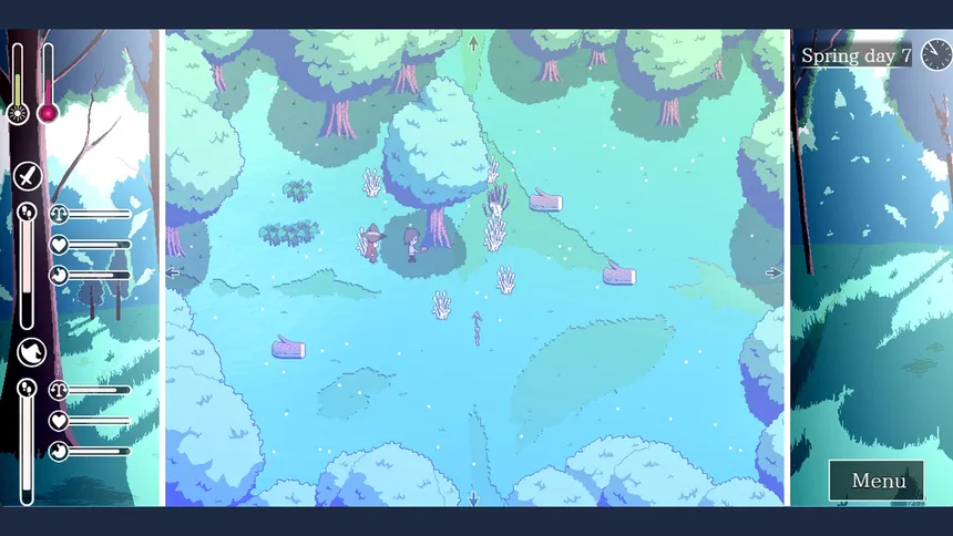A survival RPG centered on gathering herbs, hunting, and harvesting to stay alive. Explore the forest to secure food and resources, maintain your life at a small base, and build a quiet connection with a witch. The potions she brews expand your options in both exploration and daily living.