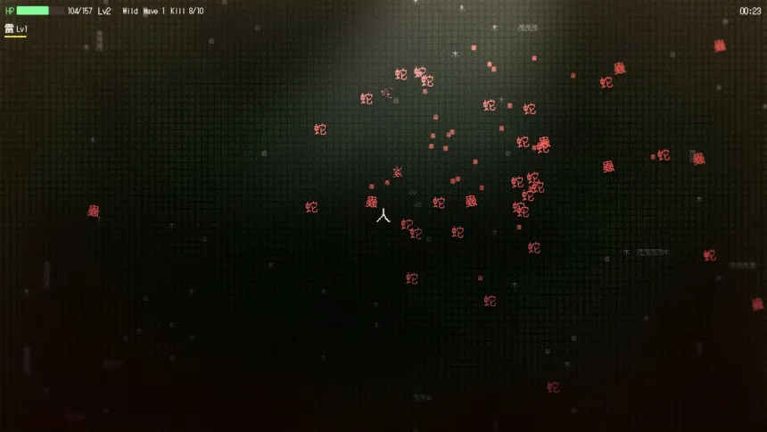 Words wage war. Every enemy, every weapon, and you yourself — everything is made of words. Cut through hordes of living characters, seize skills, and evolve from Human to God. Across five stages — Wild, Mountain, Sea, Dark, and Heaven — something awaits beyond.