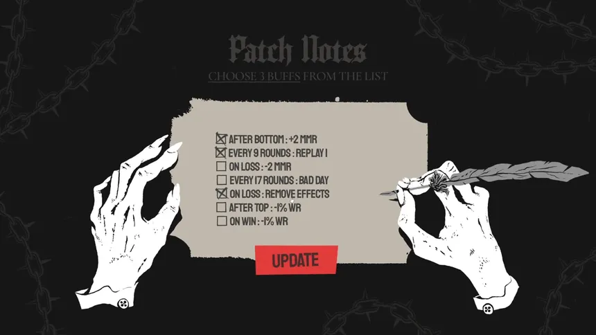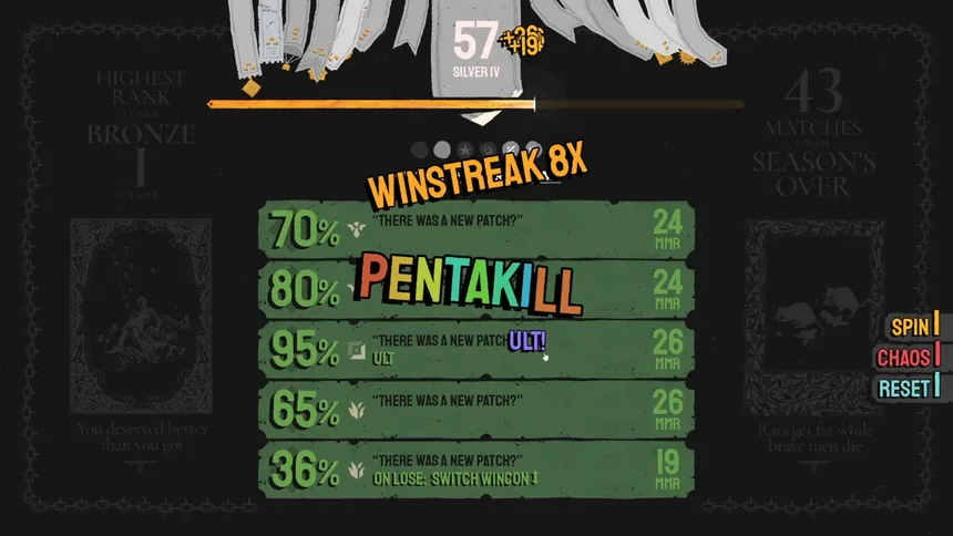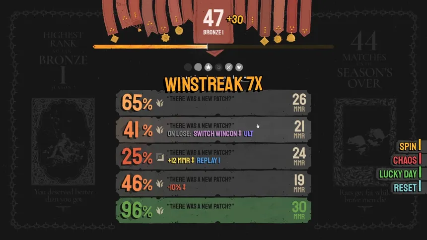 A roguelike single-player game of luck and tactics, that distills competitive ladder climbing into its purest form with one-click matches, win-streak combos, chain-reaction effects. All the satisfaction of reaching Rank 1, none of the toxic teammates or 40-minute hostage games.