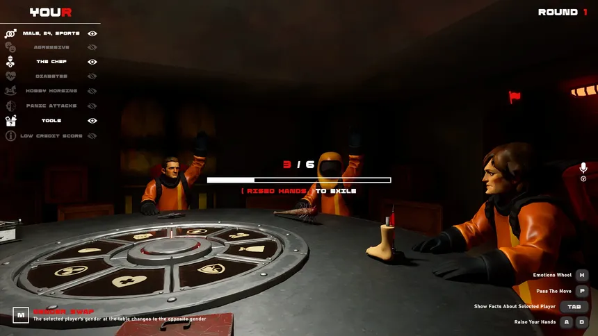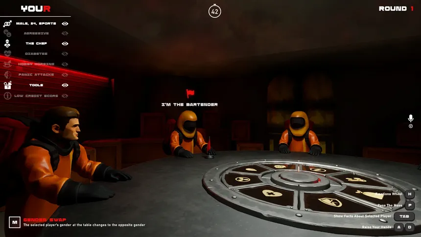 В мире произошла глобальная катастрофа. Небольшая группа выживших укрылась в изолированном убежище, где ресурсов хватит не всем. Сядь за стол переговоров с другими игроками и убеди всех, что именно ты достоин остаться! Лги, дави, манипулируй – и решай, кто выйдет за дверь!