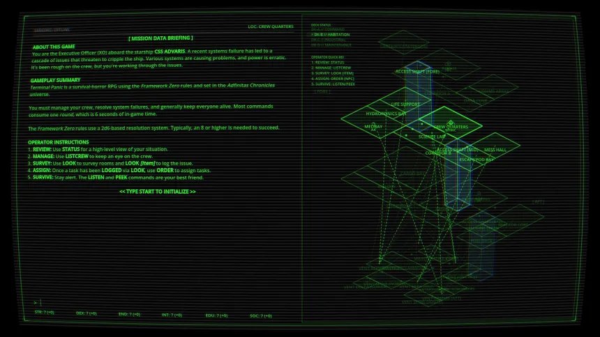 You are hurtling through space aboard an industrial freighter. The crew already had their hands full with failing systems. But now there is a new threat on board. Something is hunting you. TERMINAL PANIC is a survival-horror "interactive fiction" text adventure RPG with '80s terminal aesthetics.