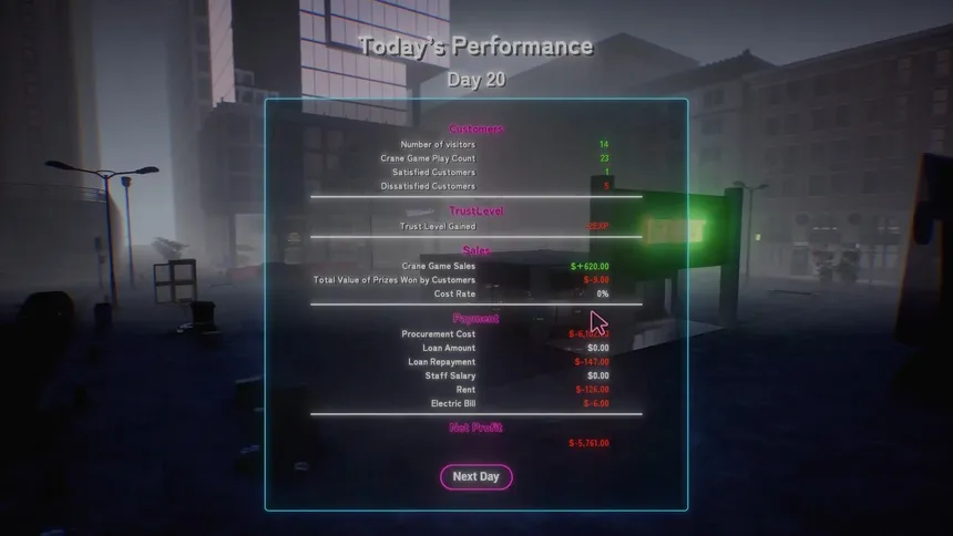 That moment when it feels like you could win… but you can’t — now it’s your turn to control it. If the claw machine is set too easy, you’ll run at a loss; if it’s too hard, customers will leave. A simulation game that demands a delicate balance in management.