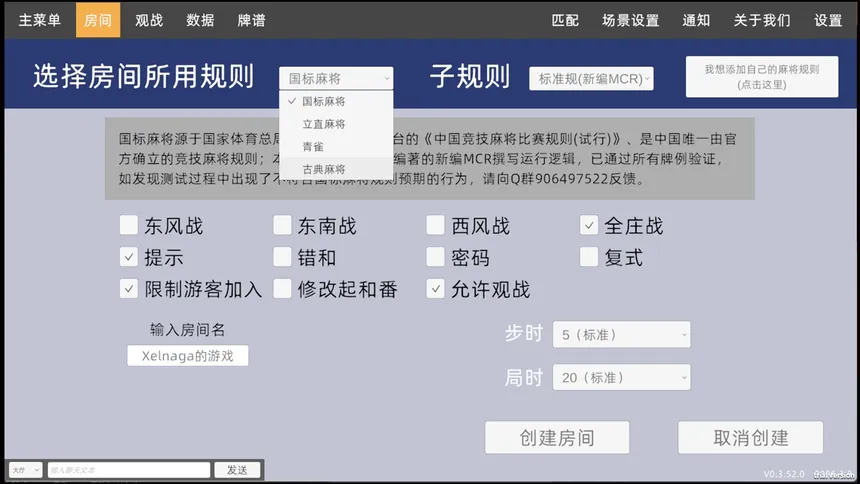 Salasasa is a cross-platform Mahjong battle platform that supports online multiplayer on PC. It offers various rule sets including Chinese Standard Mahjong (MCR), Qing Que, Classical Mahjong, and more. It also supports simple game replay (paipu) and real-time spectating features.