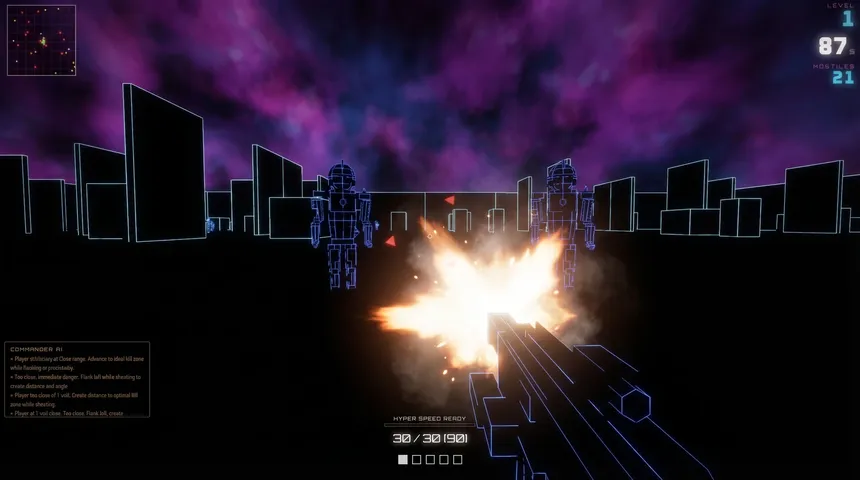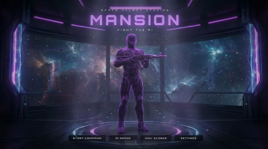 Fight a real AI that thinks, adapts, and shows you its reasoning live. Battle through procedurally generated wireframe mansions or spectate five AI labs fighting each other in endless deathmatch. No difficulty settings. No hand holding.