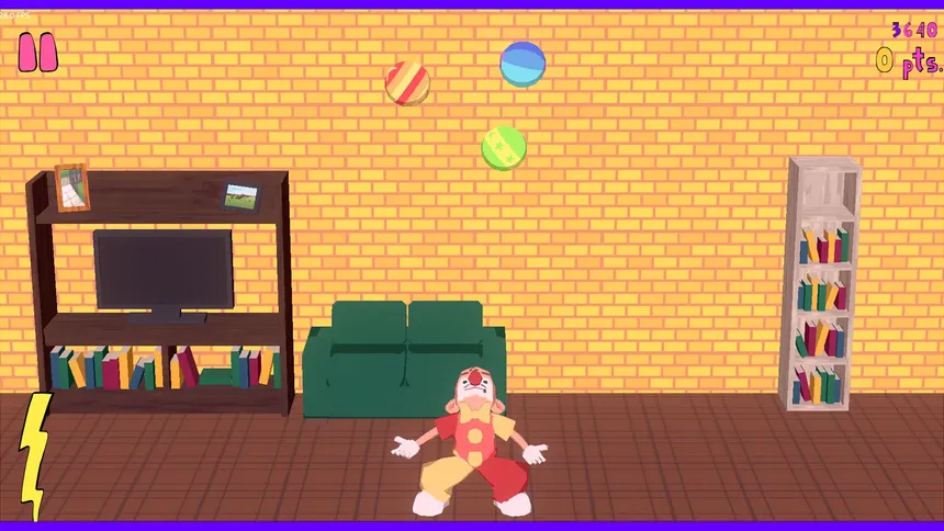 During Juggles' performance, different objects will be thrown from the sides of the room which you'll have to balance in the air in order to obtain score and in-game achievments. Dodge danger (or not) to avoid hurting yourself or use them to better your score.