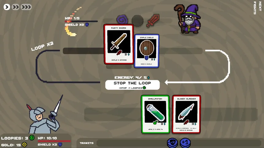 Legend has it that all who enter this dungeon are doomed to loop forever. In Loopy Dungeon, build your deck fight after fight, combine your relics and break the cycle.