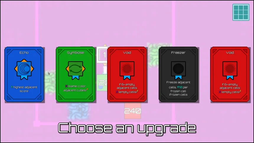 Build your cube deck and place them on a strategic grid. Combine effects, upgrade them, and maximize your score. Every choice matters. Master combinations and let the Platonic solids amplify your power.