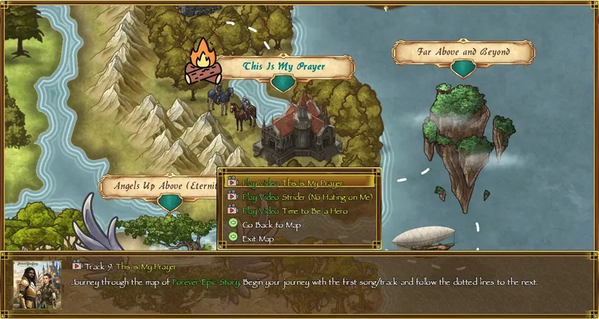 The album "Forever Epic Story: A Journey of Life (Reimagined)" is a remake of the original album that was released many years ago back in 2002. Journey through the map and experience each song with it's own animated background and music.