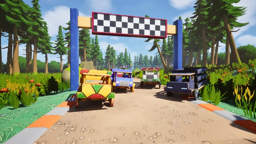 Arcade racing through iconic locations in Guatemala with customizable wooden toy trucks inspired by a beloved local tradition.