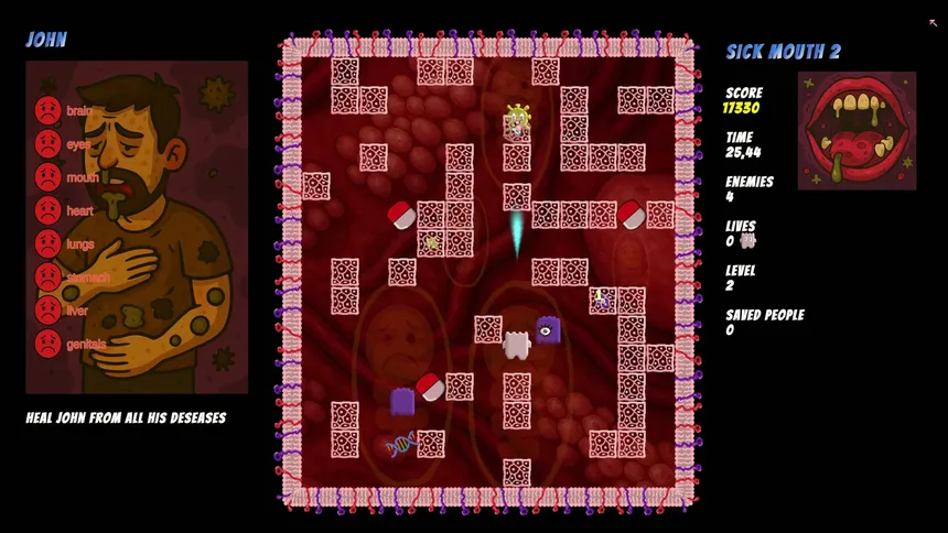 A classic-like arcade set in the micro-world. Push bio-blocks, eliminate viruses, and survive in a living, reactive, and unpredictable battlefield.