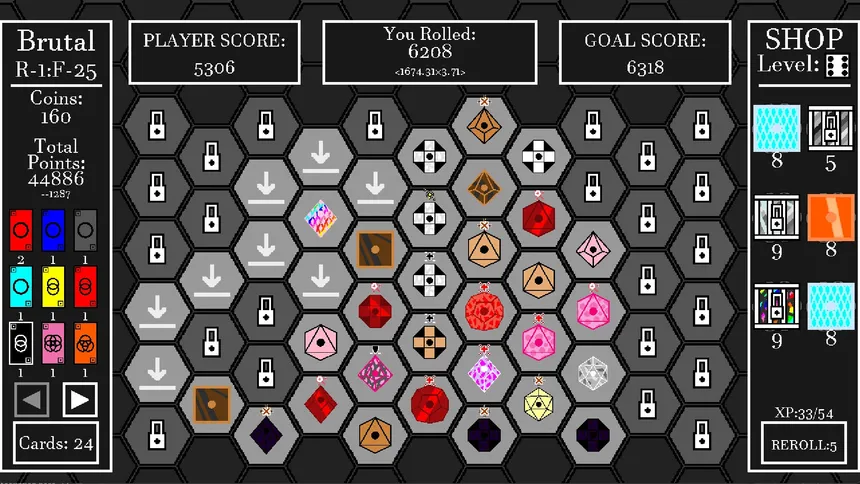 Strategically place dice on a grid, roll for points, and create combos to reach or lower the target score.