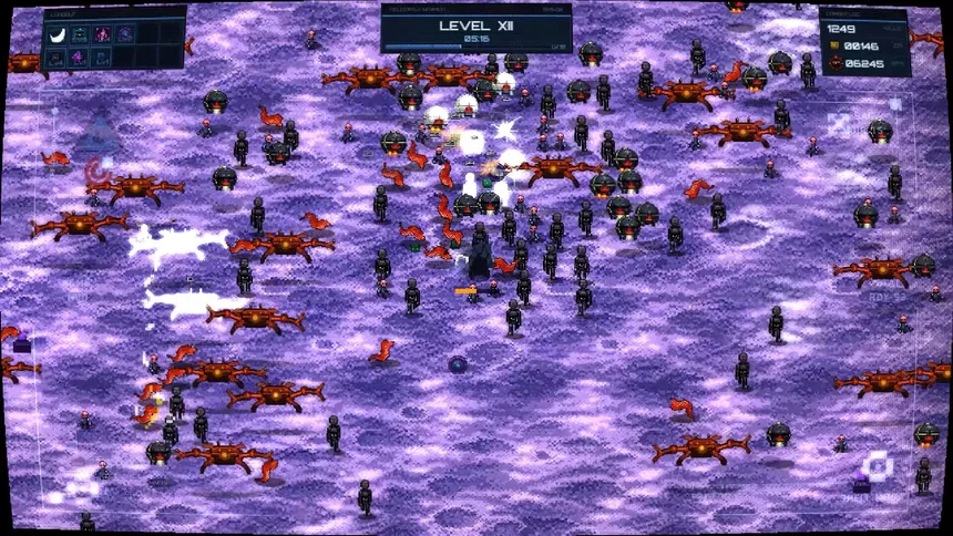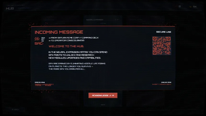 Sci-fi roguelite survival. Deploy as a Shell - a corporate combat unit - and fight through waves of hostile alien fauna. Choose your shell, collect upgrades, and survive long enough to face what Saturn Acme Corp won't tell you about.