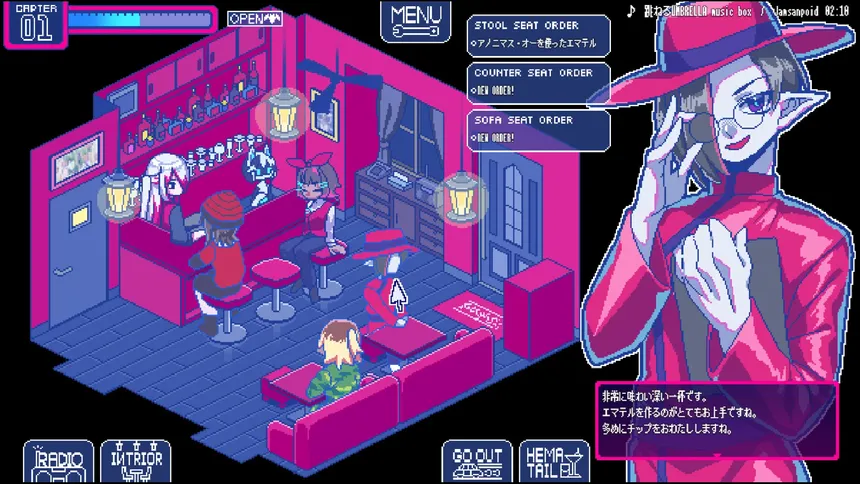 By Jamsanppoid (From Madness with Love), Sodomy Fatale lets you run a totally normal vampire gay bar! Craft custom "blood drinks" (Hematels), chat with quirky patrons, and attract VIPs. Vibe to original tunes and build your dream bar!