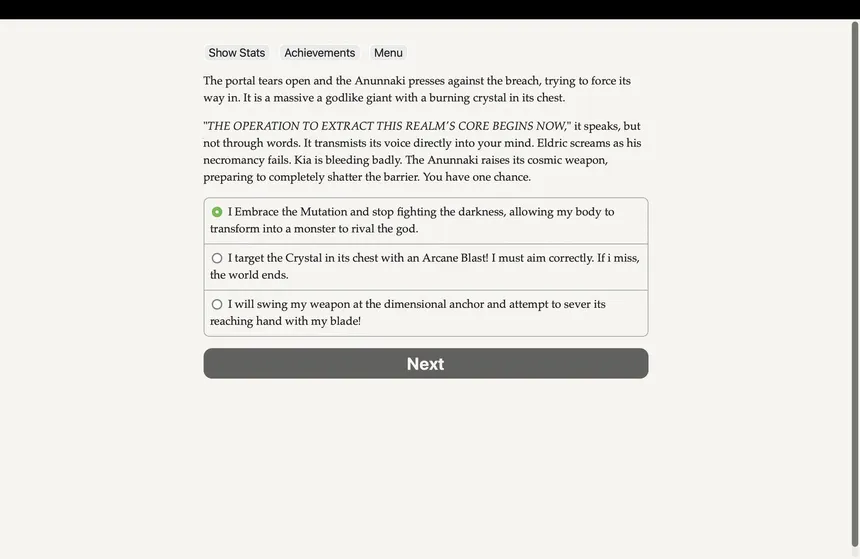 As the Harbinger, you are the only Keeper who can cast spells. Stop a necromantic plague, uncover an Elven conspiracy, and decide the fate of a dying world! A text-based fantasy novel, 193,000 words and hundreds of choices, without graphics or sound effects."