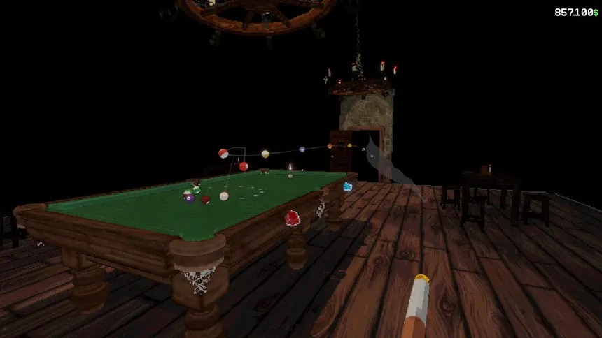 Играйте в одиночный бильярд, где каждый удар — это риск. Игрой заправляет слон. Порядок безопасных и проклятых ходов скрыт. Зачищайте стол, чтобы покупать предметы, но избегайте забивать шары в проклятые ходы.