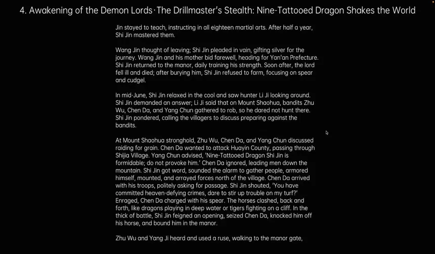 Это мультимедийная нарративная игра, основанная на изображениях и тексте, адаптированная по роману «Речные заводи» — одному из четырёх великих классических романов китайской литературы.