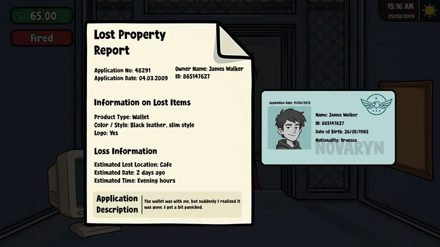 You are in charge of a lost & found office, where you have to return people's belongings... or sell them. Examine documents, question people, and uncover the truth. Return items or sell them for profit, but one wrong move can expose you and make you lose everything.