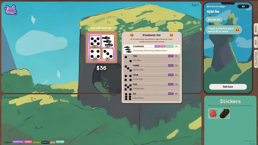 Sell prerolled dice to make crazy money in this silly roguelite incremental puzzle mix-up. Pack dice in boxes, make absurd combos and happily overcharge your quirky clients!
