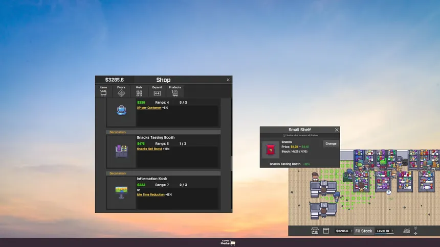 Расслабляющий idle симулятор рынка, который располагается в углу экрана, пока вы занимаетесь другими делами.