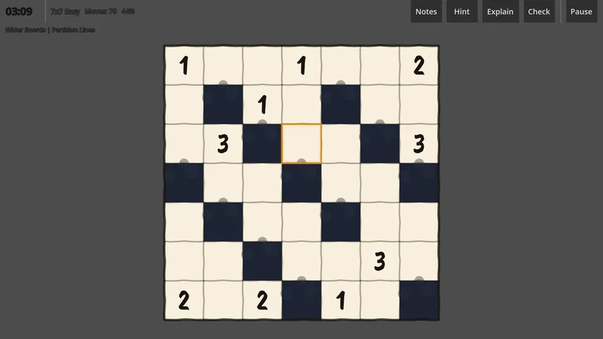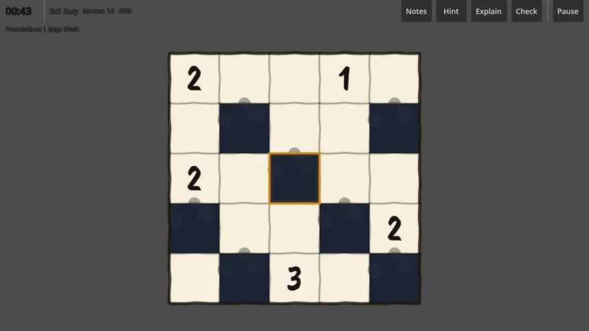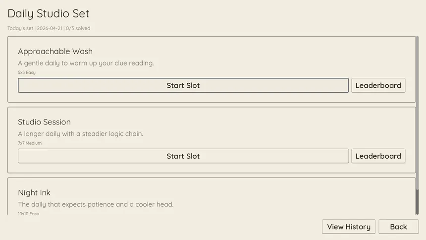 Hand-painted Nurikabe with an authored learning path, fixed challenge books, explain-before-reveal hints, and recurring daily and weekly competition boards.