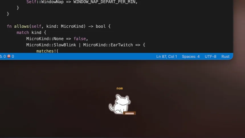 Pixel cats that roam your real open windows. Your browser, your spreadsheet, your whole desktop. It has no idea those are apps. It just sees surfaces to ignore you from. Leave it running and see who shows up when you come back.