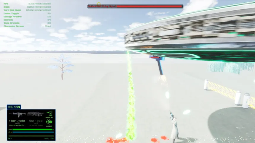Play as space warrior in this 2d person sci-fi shooter game. Mission is to kill different enemies like spiders and troopers and end of level destroy big ufo ship and collect skulls