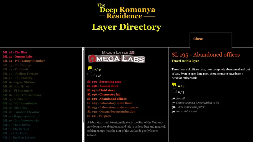 An HTML-based, furry TF adventure inspired by CHANGED, made with Harlowe. You find yourself at the bottom of a vast, 200+ layer bunker, you find yourself in a world where everything wants your humanity. Will you escape the Romanya Deep Residence without transforming?