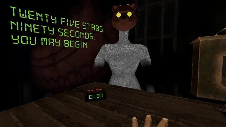 500 STABS. 30 MINUTES TO ESCAPE. A horror roguelite about stabbing yourself in the hand 500 times to escape a deadly trap. Can you make it out with all your fingers? Or will you bleed out on the table?