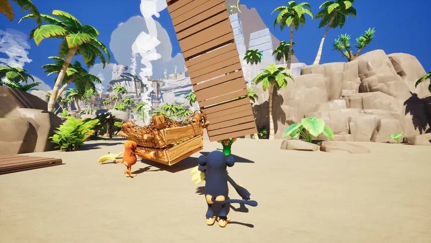Monkey Bizniz is a co-op banana extraction game where you guide a troop of monkeys as they collect bananas and push their overloaded cart up a chaotic mountain full of obstacles! Balance, dodge, and climb your way to the top in this fun physics-based adventure. Solo or co-op with friends!