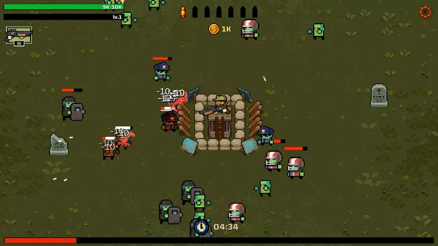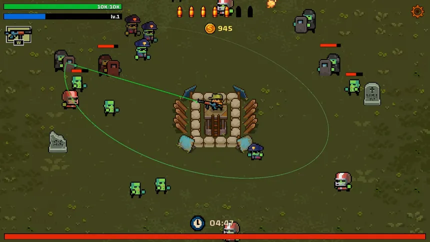 Пошаговый пиксельный шутер про выживание против волн зомби. Ограниченные ресурсы, тактическая стрельба, разнообразное оружие и глубокая инкрементальная прокачка с большим деревом навыков.