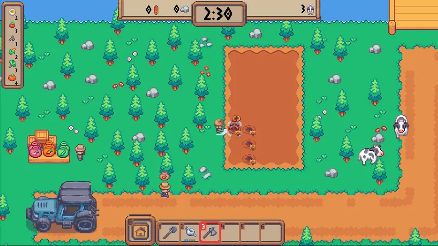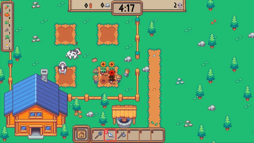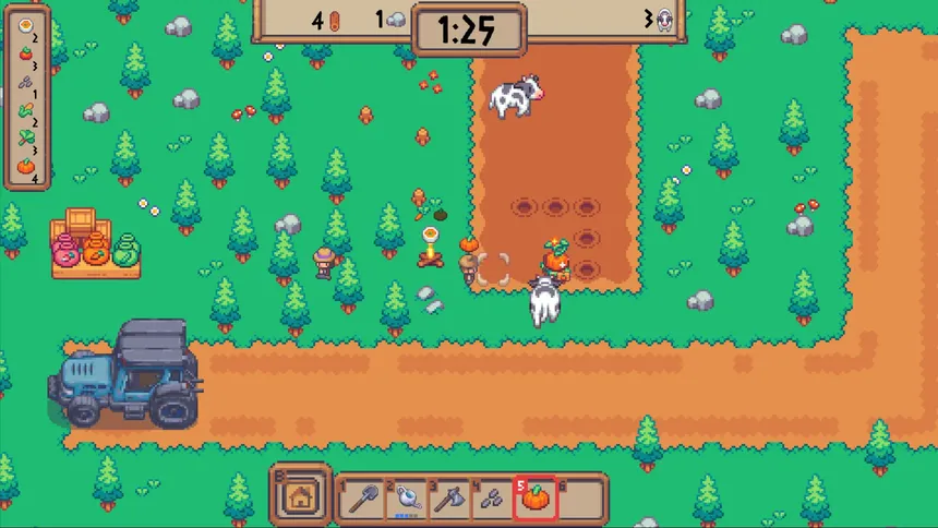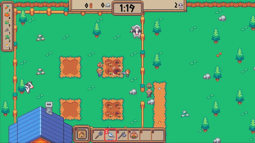 A chaotic farming race against the clock! Sow, water, harvest your crops and prepare meals — then deliver them to the tractor before the cows trample everything. Solo or with friends in online co-op!