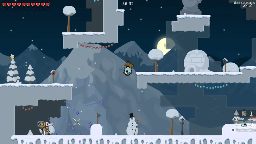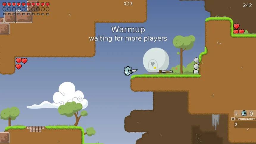 TeeworldsArchive is a free online multiplayer game with community support, including Deathmatch and Infection, available for all major PC operating systems. Battle or cooperate in the Tees' world with up to 64 players. You can also play in a map with music.