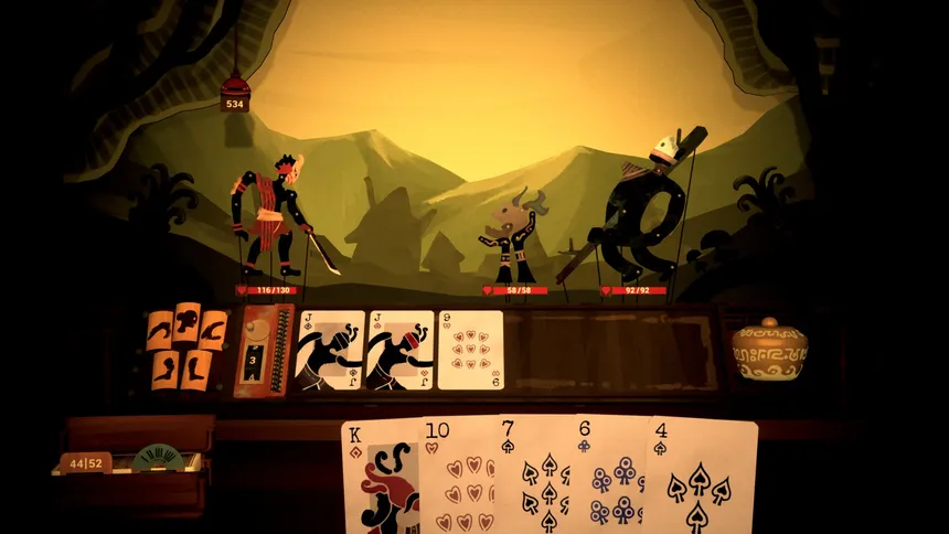 Deadhand Theater is a dark, turn-based roguelike deckbuilder set on a stage where poker cards are your weapons and every hand you play carries unique combat properties. Collect and upgrade talismans, refine your deck, make desperate sacrifices with your own body to survive one fight longer!