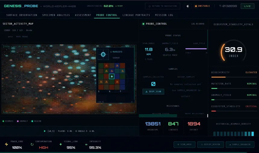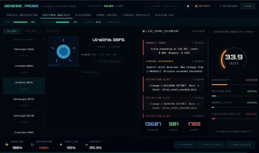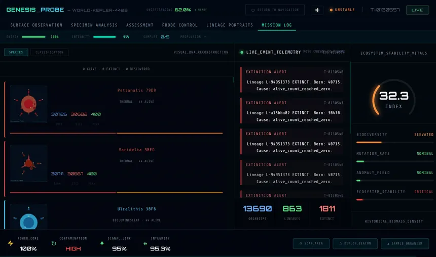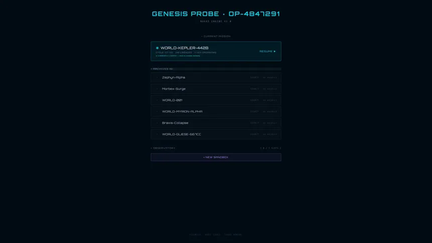 47 million probes were launched into the void. Yours just found something alive. A living universe simulation where evolution never stops — not even when you do.