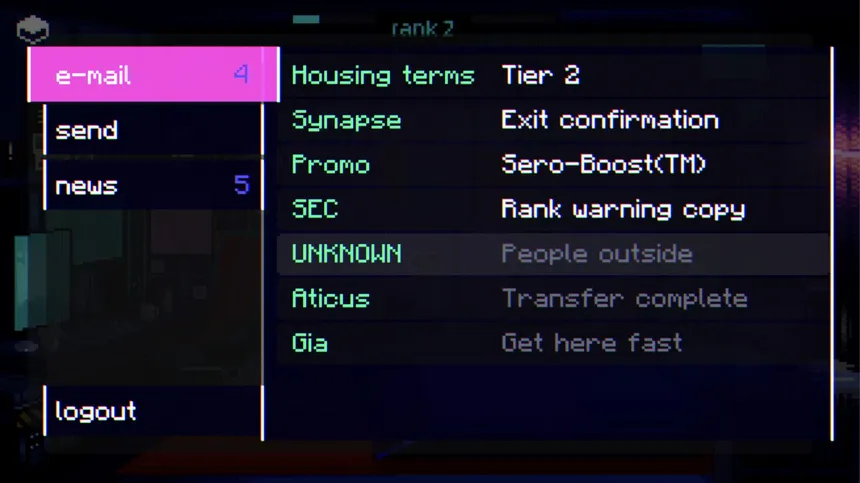 A cyberpunk psychological thriller. Explore dangerous connections in the city that measures your every feeling, rely on emotional stimulants, hack, steal forbidden code, survive and maybe understand why.