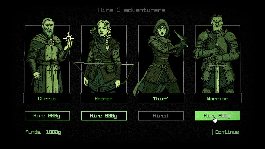 A roguelike management game where you operate DelveCo’s corporate software to recruit adventurers, send them into procedurally generated dungeons, direct their actions, equip gear and spells, and oversee turn-based combat while balancing risk and profit under strict quotas.