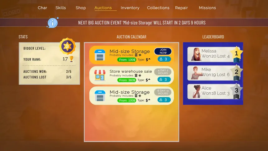 Играйте за Питера: участвуйте в аукционах заброшенных складов, забирайте найденные сокровища и продавайте их в собственном магазине. Peter the Stash Hunter — однопользовательское приключение, сочетающее азарт аукционов, лутер-RPG и симулятор магазина.