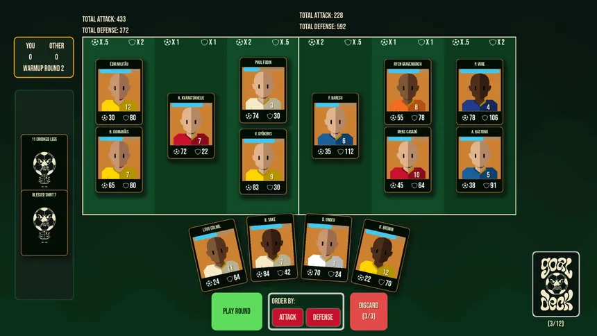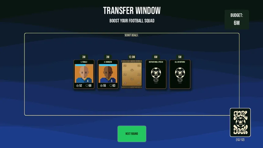 Football meets roguelike deck-building. Be the coach: draft legends, stack Manager Cards, and manage player egos with Reigns-style choices. Place your squad across 3 zones, open packs, upgrade cards, and conquer all 8 cups against escalating AI. Lose and start over — win and lift the trophy.