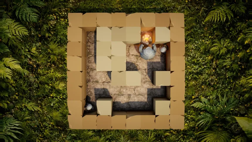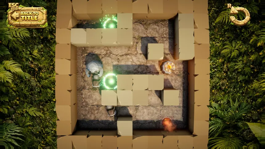 A strange puzzle adventure in ancient ruins, defying worship and casting birthday cakes into the abyss.