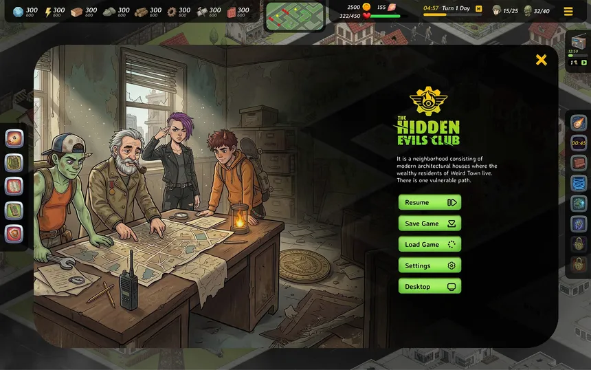 The Hidden Evils Club — игра от компании Loreland Studio, разработанная для платформы PC. Проект совмещает в себе такие жанры и элементы, как стратегия и симулятор. Дополнительно игроки выделяют такие особенности игры, как башенная защита, тайм-менеджмент, 2d и тактика. Игра рассчитана на одиночное прохождение, многопользовательские режимы не предусмотрены.
