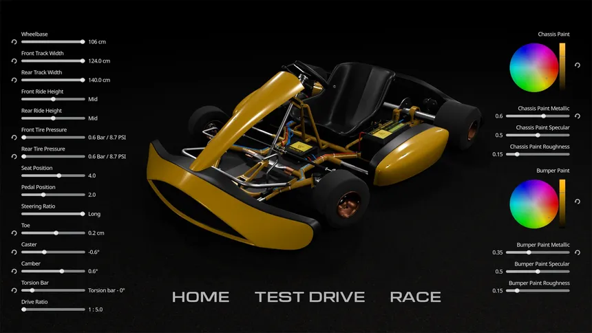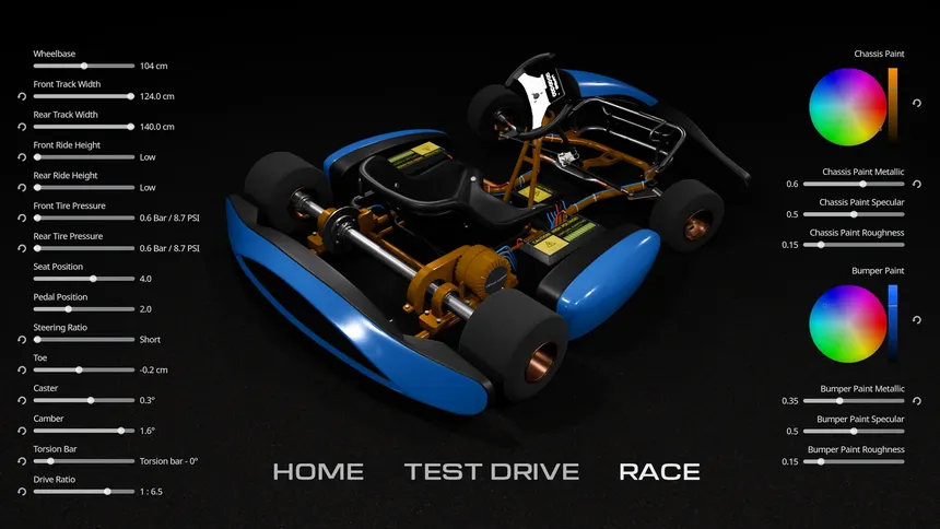 A ground-up karting simulator built on real racing experience. Authentic chassis flex, VR mimicked body weight shift, and tire dynamics that make a kart feel truly alive.