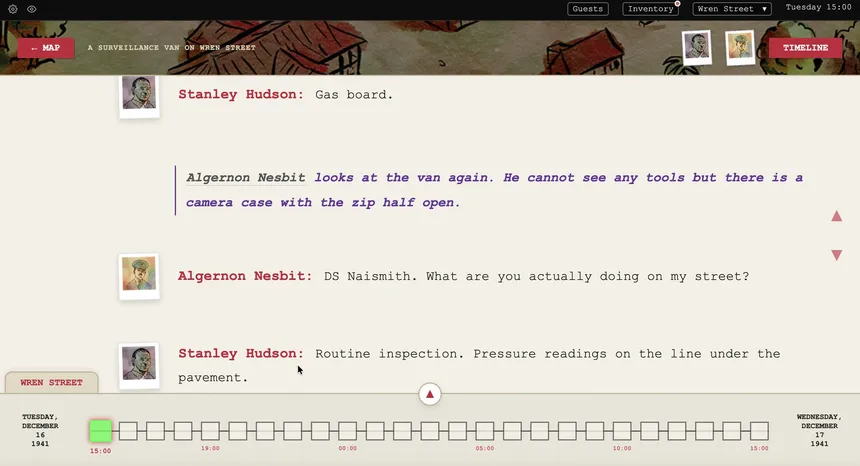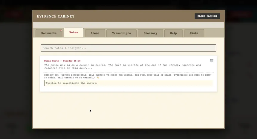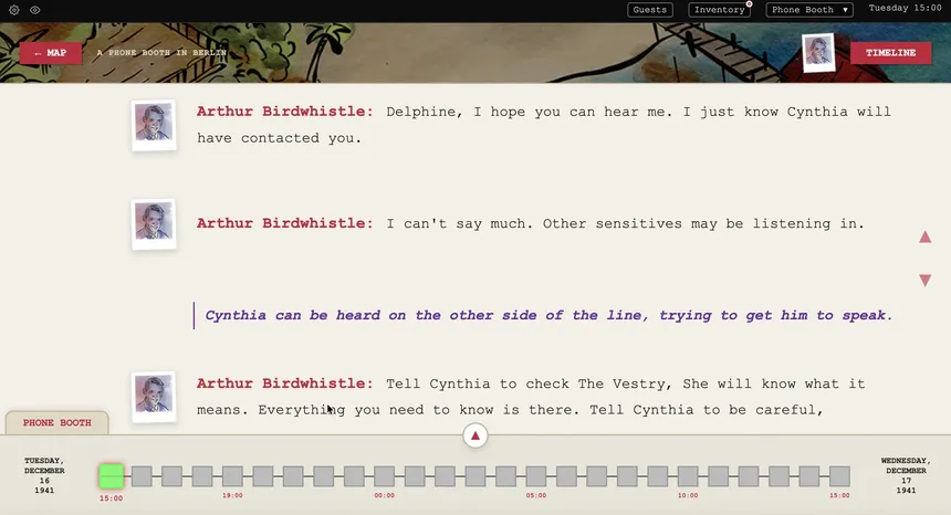 A detective noir puzzle deduction game. Explore a non-linear timeline during the cold war on a globe-trotting adventure following a trail of spies from a quiet English harbour town to a frozen Finnish fishing village and the corridors of an intelligence service rotten at its core.