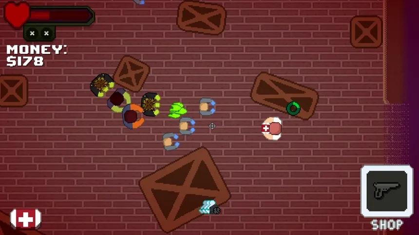 Fight against over 25+ different types of enemies in my super epic top-down retro wave shooter; Bio-Breaker! Buy weapons to upgrade, active abilities and passive perks to survive against the hordes!