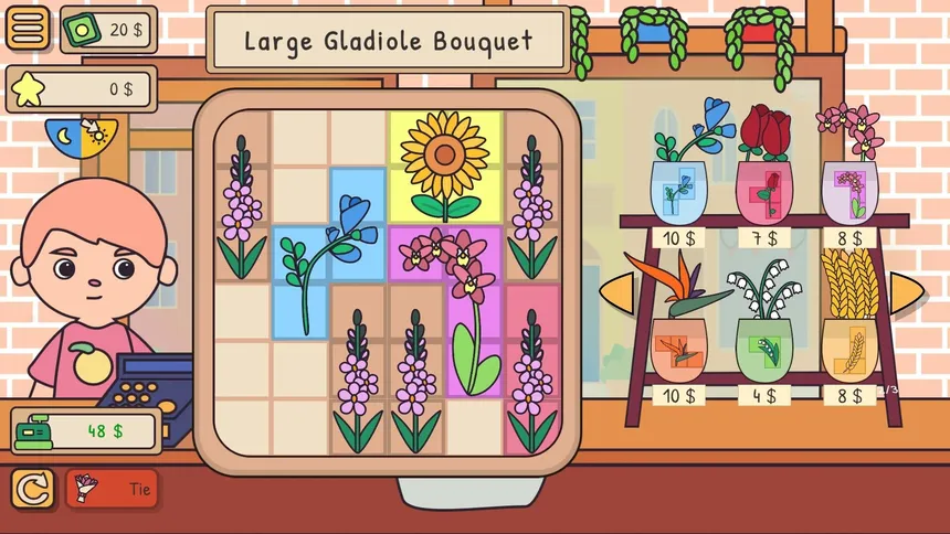 A cozy puzzle game about running your own little flower shop. Place flower tiles, create charming bouquets and brighten your customers’ day. Decorate your shop, unlock new flowers and discover a variety of beatiful puzzle combinations.