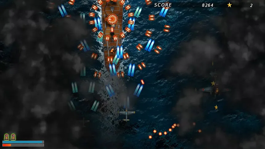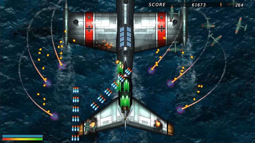 A 2D scrolling shooter set in the Pacific theater. Fly as an Allied fighter pilot and take on the 「Empire of the Rising Sun」 overwhelming forces. Wipe out enemy units and turn the tide of battle.