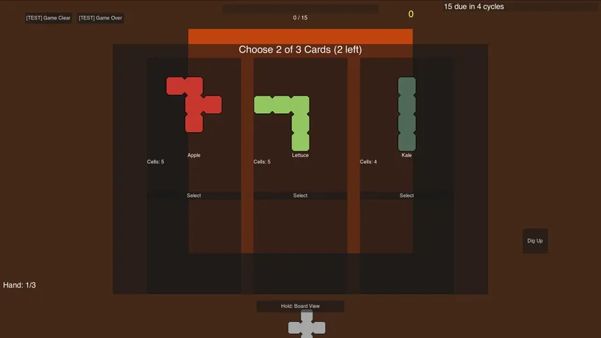 This is a roguelite farming strategy game where every tile matters. Choose wisely from randomly offered polyomino crop tiles, place them in nice order for powerful synergies and terraform a dead planet before your debt catches up.
