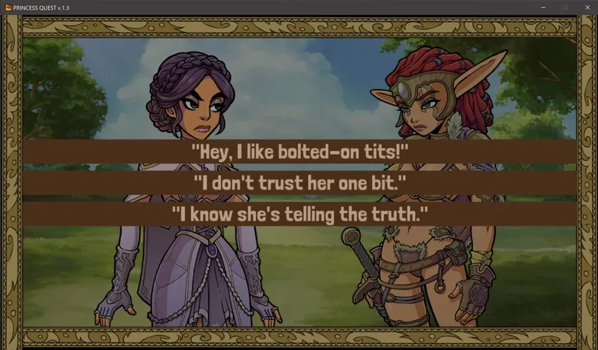 PRINCESS QUEST — игра от компании AKABUR, разработанная для платформы PC. Проект совмещает в себе такие жанры и элементы, как визуальная новелла. Дополнительно игроки выделяют такие особенности игры, как визуальная новелла, романтика, юмор и короткая. Игра рассчитана на одиночное прохождение, многопользовательские режимы не предусмотрены.